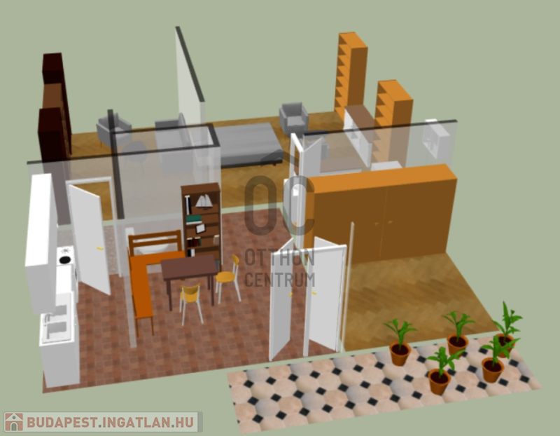 • 96,4 m²-es lakótér, 3 tágas szoba