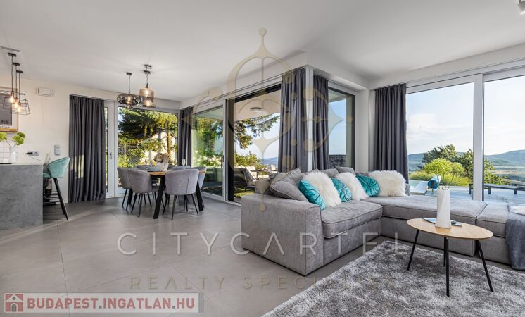 Tágas, panorámás nappali amerikai konyhával és étkezővel