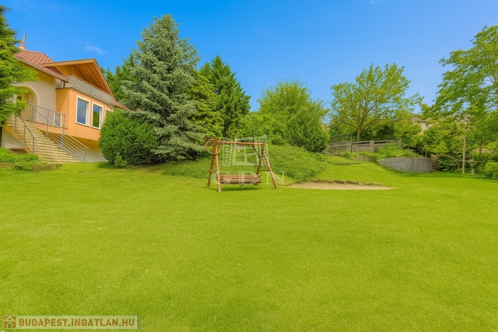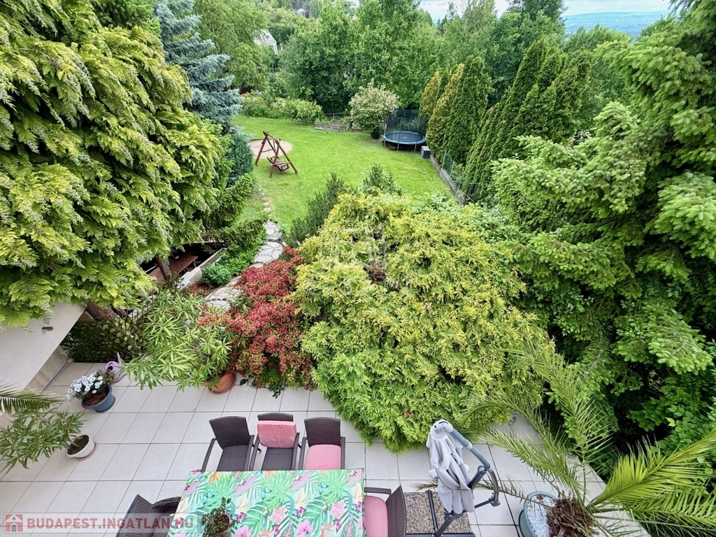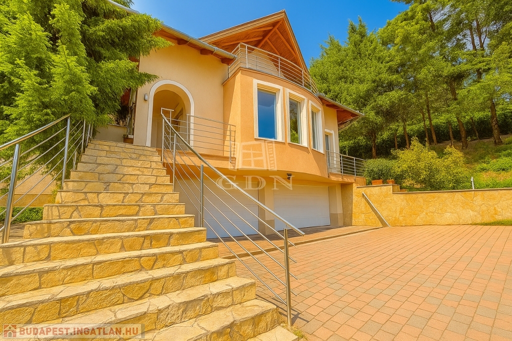 Az alsó szint praktikus kiegészítő funkciókat kínál: háromállásos garázs, borospince, konditerem és több tárolóhelyiség áll rendelkezésre. A gondozott kert és a teraszok Szentendrére és a környező zöldövezetre nyíló panorámája természetes része a mindennapoknak.