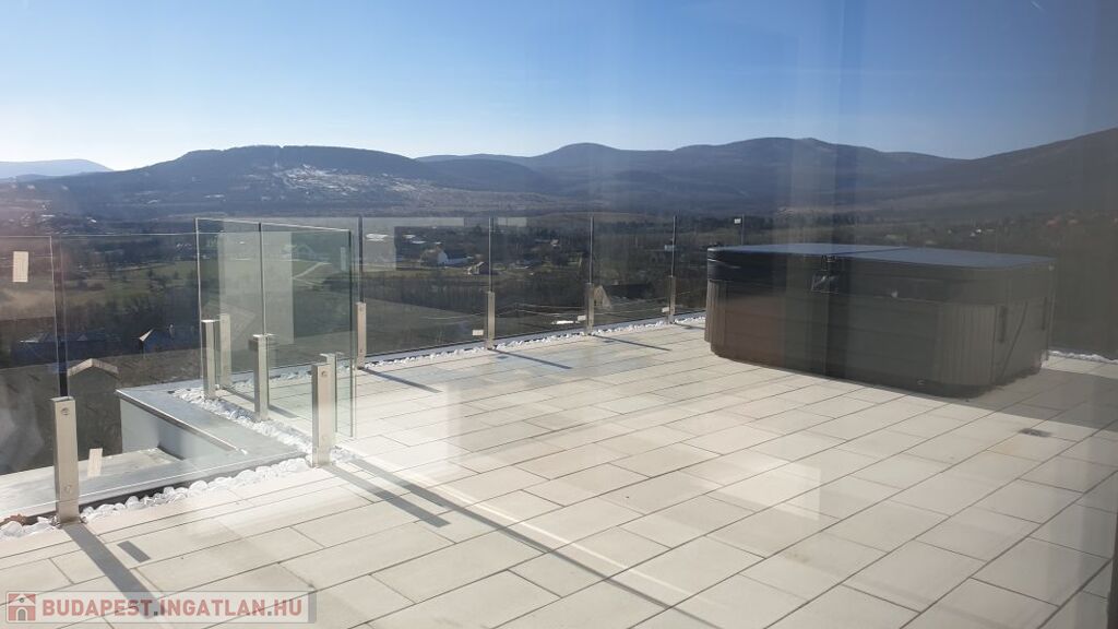 Az ingatlan 1085 nm-es utcától lejtős, teraszosított, minden pontjáról panorámás telken épült. / A telekrendezés folyamatban van. / A hasznos lakóterület 180 nm, melyhez három terasz kapcsolódik, ezek alapterülete összesen 100 nm.