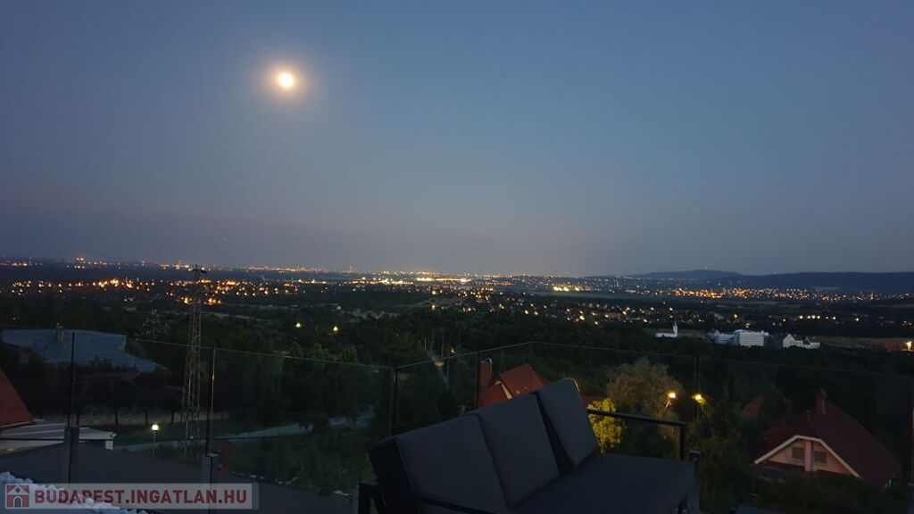 Szentendre Pismány hegyen eladó egy háromszintes, vadonatúj minimál villa elvehetetlen panomával Dunakeszitől Budapesten át, a Skanzenen keresztül a Pilisi Parkerdőig.