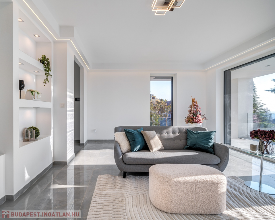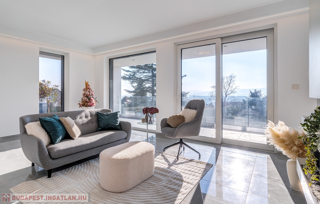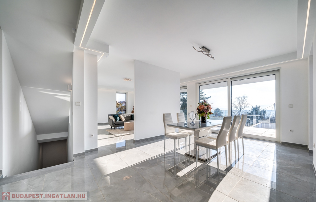 A hatalmas üvegfelületek és a padlótól a mennyezetig érő prémium gondoskodnak a fényárban úszó, tágas terekről, míg az energiahatékony megoldások és okos rendszer garantálja a kényelmet és a fenntartható működést.