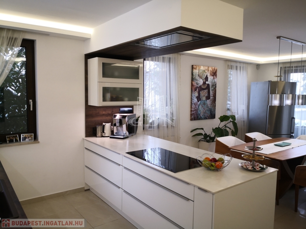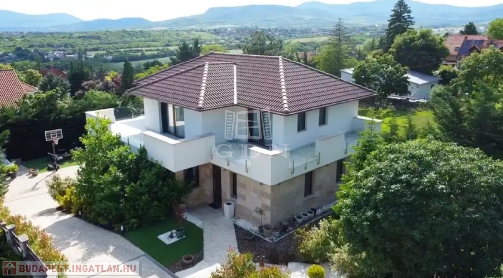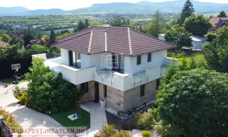 Szentendre Pismány-ban, nyugodt, kertvárosi, zöld környezetben új tulajdonosát várja a fotókon látható, modern, elegáns, panorámás, minden tekintetben prémium színvonalú, teljesen újszerű családi ház.