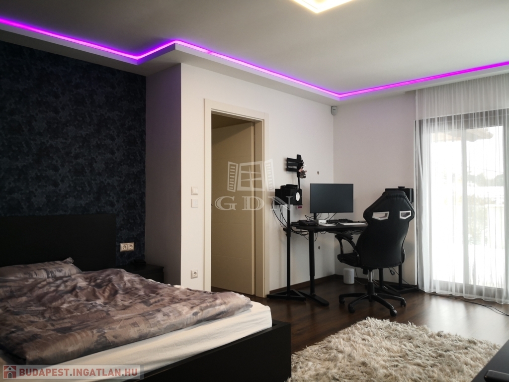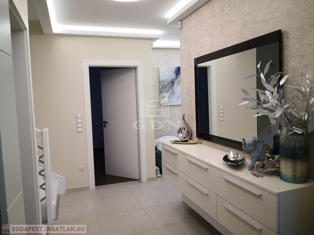 A 889 m²-es, parkosított telken álló, 291 négyzetméteres ház 2015-ben épült, ezt követően 2022-ben kívül-belül teljes körű, minden apró részletére kiterjedő magas minőségű felújításon és átalakításon esett át..