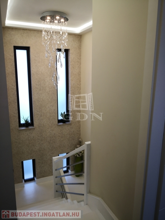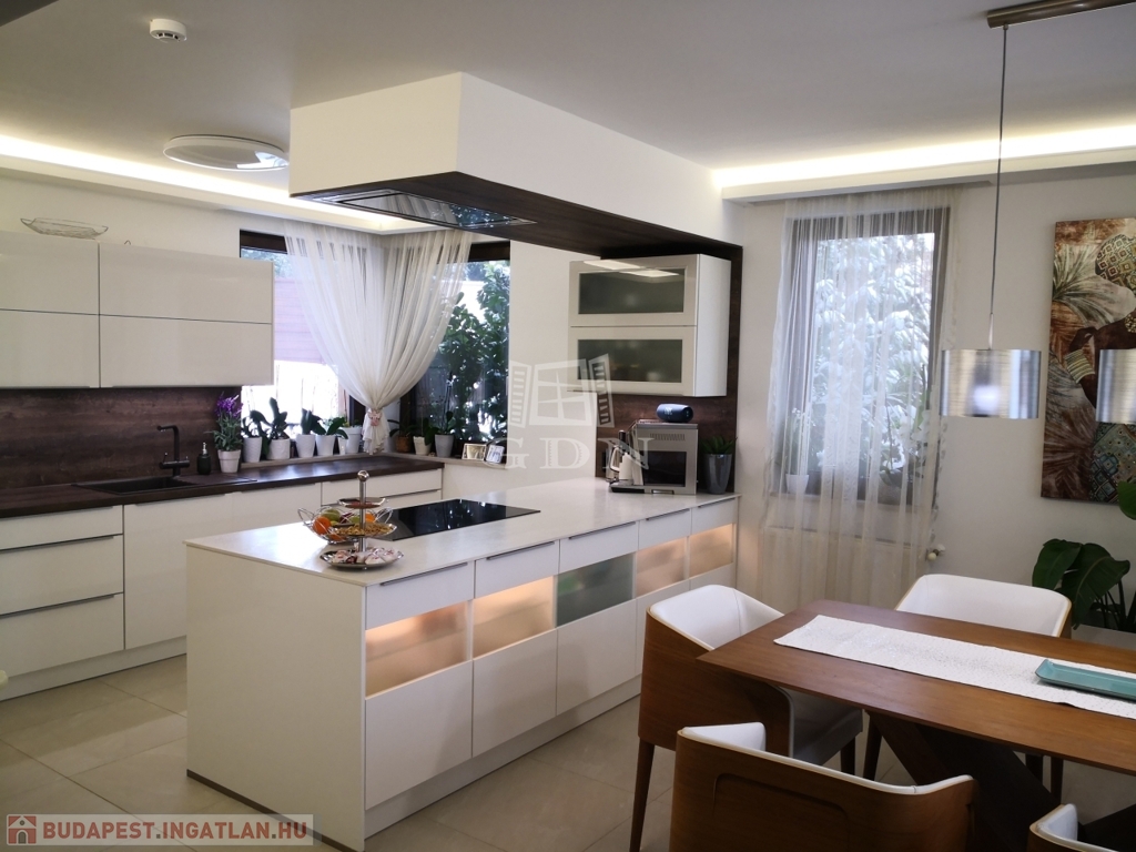 A modern, Siemens gépekkel felszerelt Nobilia konyha és a stílusos étkező mellett hat tágas szobával, elegáns gardróbbal, két exkluzív fürdőszobával, valamint négy WC-vel és tágas, világos terekkel rendelkezik. A középső szinten magas minőségű, gyönyörű parketta a burkolat, a prémium életérzés a ház minden apró részletében jelen van, amit az alábbi felszereltség is erősít.