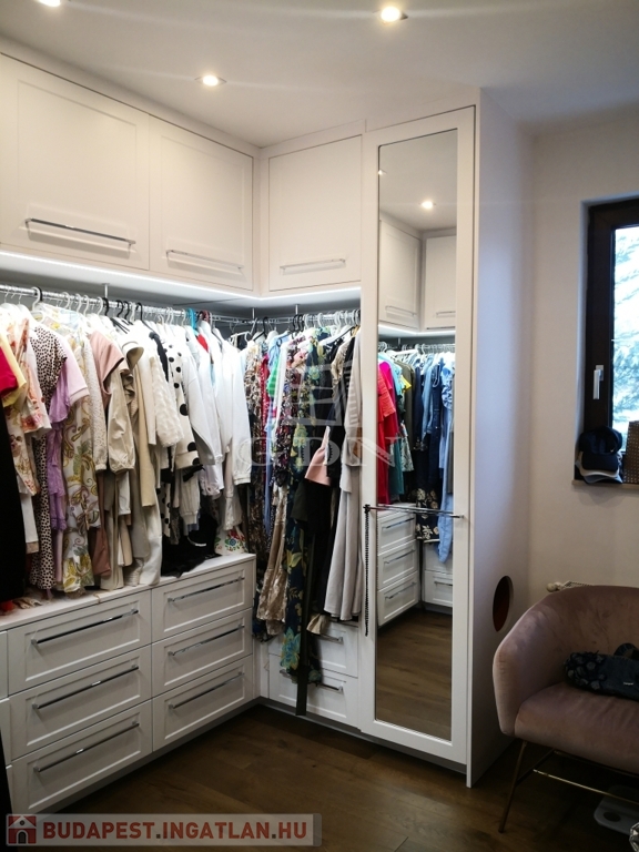 A ház eleganciája és szépsége mellett praktikus és átgondolt is, ilyen ritkán látott részlet pl. a mosókonyhába levezető szennyesledobó, valamint a testre szabott gardróbok, amelyek a mindennapok kényelmét szolgálják.