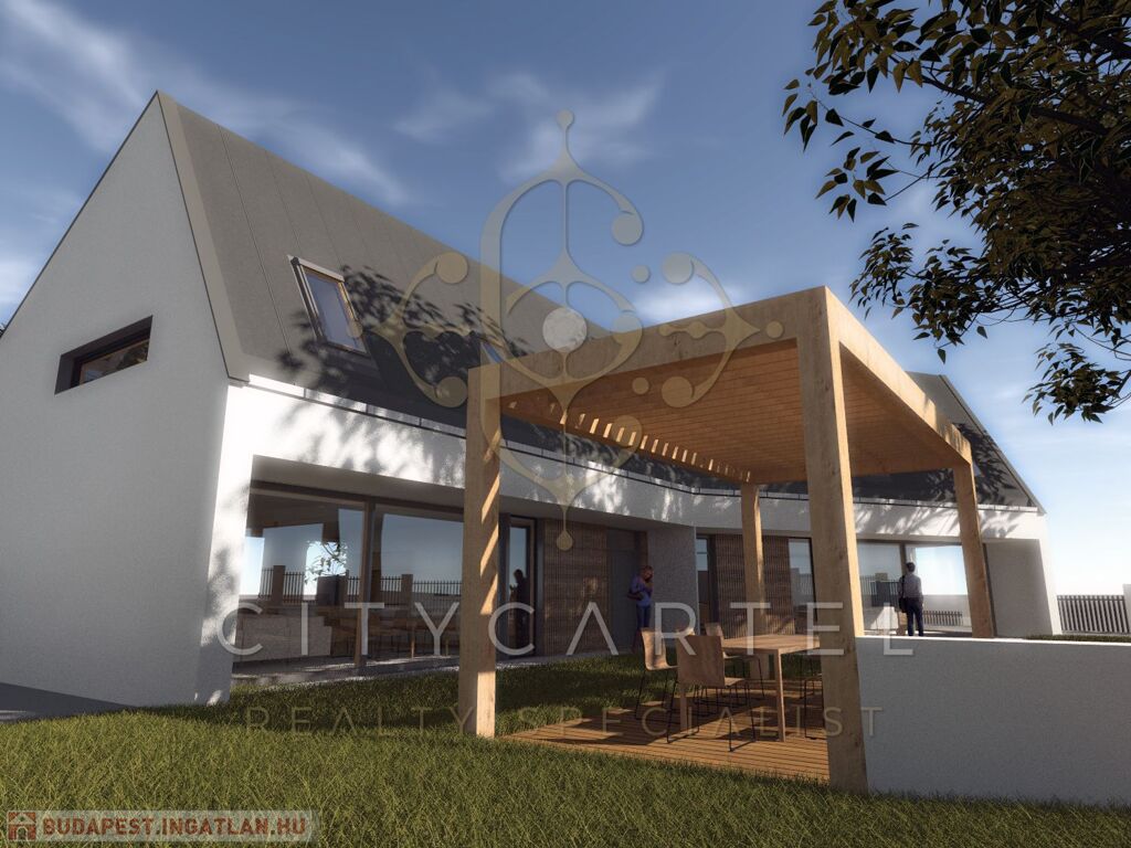 Szentendrén eladó modern stílusú 3 szintes ikervilla mindkét fele.