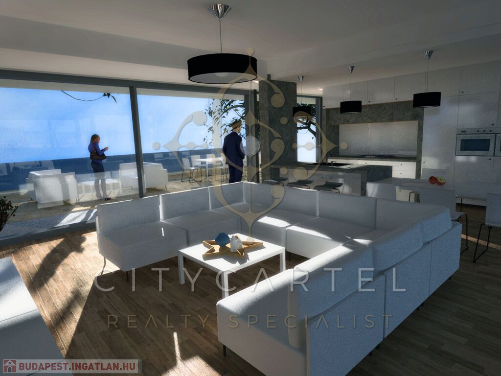Az elektromos autó töltővel is felszerelt 2 x kétállásos garázs-szint felett két szinten helyezkedik el az élettér. A nappali-étkező-konyha és az egybenyitható 45 nm-es DK-i tájolású Dunára néző terasz valamint a közvetlen kertkapcsolat, a maximális kényelem luxus érzetét kínálják. Továbbá ikerfelenként 4 hálószoba, 3 fürdőszoba, dolgozó/vendégszoba és fitness/wellness helyiség kerül kialakításra. A hatalmas üvegfelületeknek köszönhetően az ingatlan benapozása páratlan, az árnyékolásról motoros mozgatású zsaluzia gondoskodik.