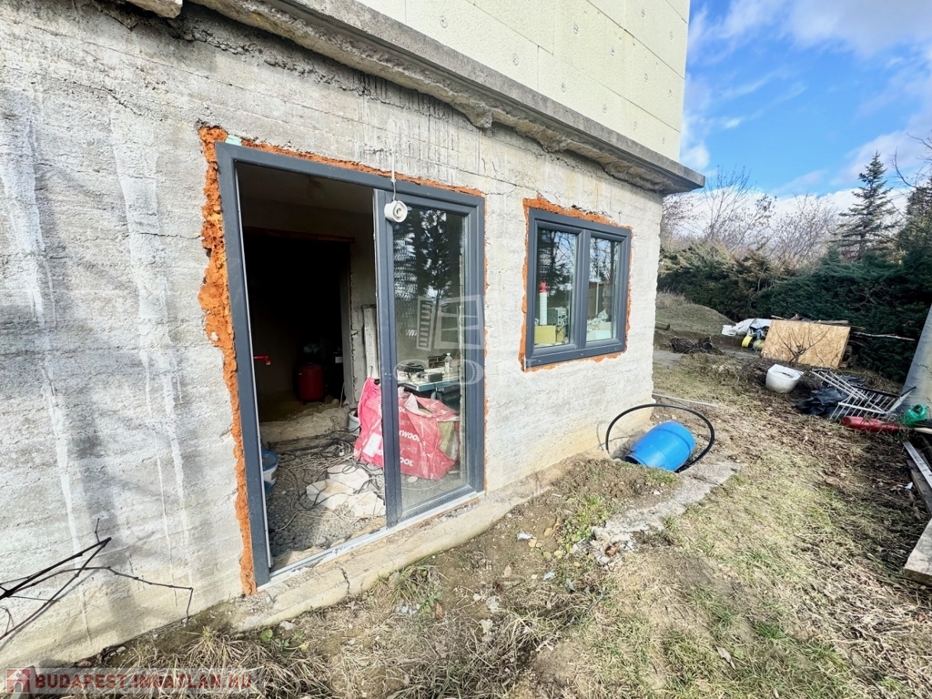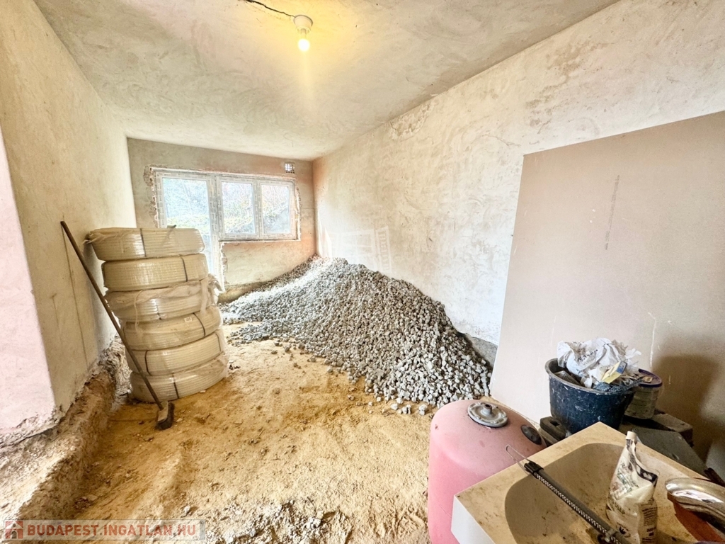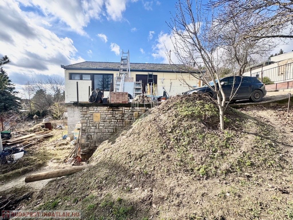 Szentendre kedvelt hegyvidéki környezetében, Tyúkosdűlő csendes aszfaltozott, mellékutcájában, ÜH/1 övezeti besorolású, 883 nm-es, telken, 1950-ben 30 cm-es téglából épült, 50 nm-es lakóterületű, 2 szobás, lapostetős, monolit betonfödémes, 3 rétegű nyílászárókkal szerelt lakóház eladó. A már meglévő épületre egy 50 nm-es, lakóterületű, 3 szobás könnyűszerkezetes, 10 cm-es külső hőszigeteléssel ellátott, összkomfortos faház került elhelyezésre, amihez egy dunai örökpanorámás 25 nm-es terasz kapcsolódik. Az épületegyüttes kiváló elosztású, napos-világos fekvésű, elektromos fűtésű, alsó része építés alatt álló a felső részét tekintve lakható, átlagos állapotú. Igény esetén a faház elbontását követően a két szint összeköthető, és akár tégla falazattal épített felső szint kialakítható.