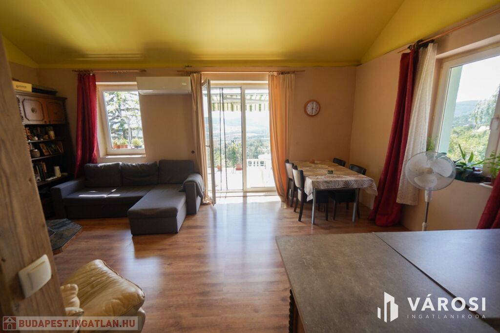 Hegyoldalon helyezkedik el így lépcsőn keresztül jutunk el a a kétlakásos családi házba így a panorámás kilátás biztosított!