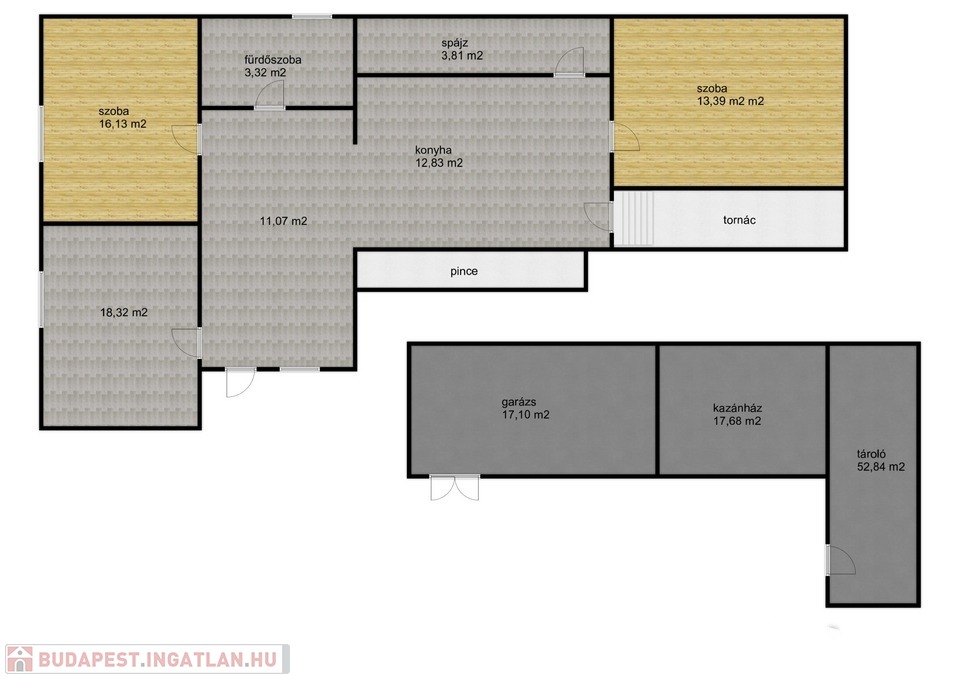 Az ingatlan további előnye, hogy a ház alatt található egy tágas pince, garázs és kazánház, amely kényelmes parkolást és tárolási lehetőséget biztosít. egy 53 nm-es tároló áll rendelkezésre, amely könnyen átalakítható külön lakrésznek vagy akár vállalkozásnak is.