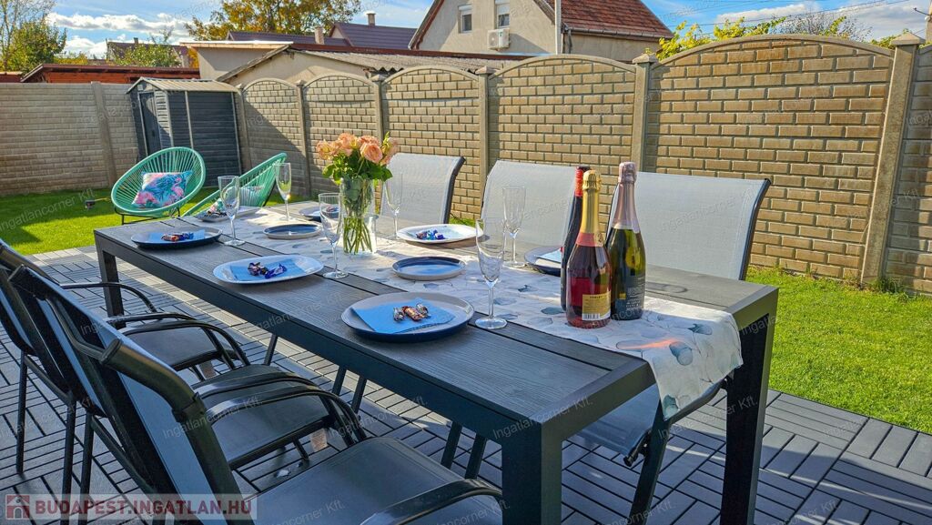 Szigethalom központjában, egy csendes, rendezett utcában, ÚJSZERŰ, TÁROLÓ-KAPCSOLATOS, OKOS OTTHON CSOMAGGAL ELLÁTOTT ( FŰTÉS, HŰTÉS, ÖNTÖZÉS, VILÁGÍTÁS IS TÁVOLRÓL VEZÉRELHETŐ) ikerház eladó.