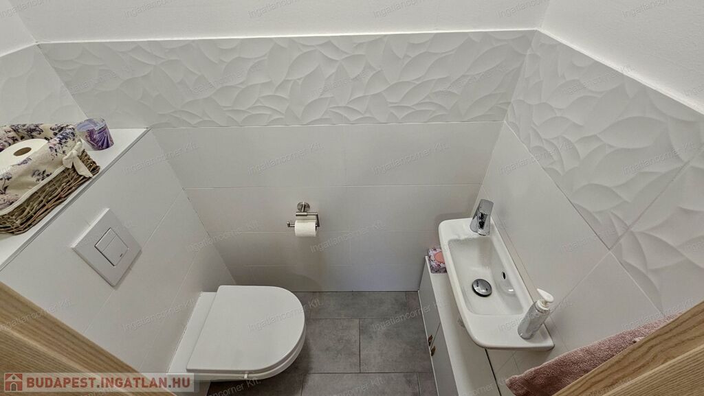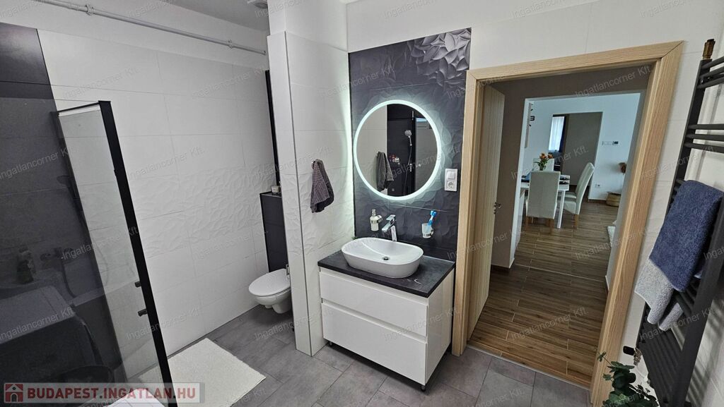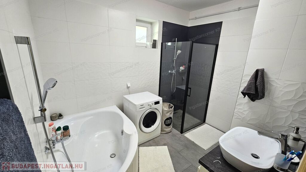 - Fürdőszoba épített zuhanykabinnal, sarokkáddal, WC-vel