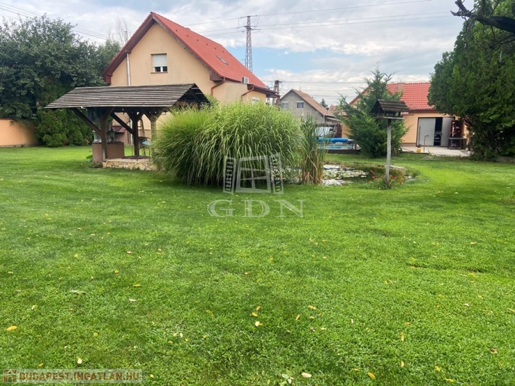 A parkosított, gondozott kert, díszfákkal, cserjékkel, Hummer automata öntözőrendszerrel, kerti sütögetővel, grillezővel, bográcsozóval, zárt kerítéssel, 3db automata kertkapuval, fedett terasszal, 3 db fúrt kúttal, Pedrolló szivattyúval, kerti csapokkal, 24m3 kerti tóval, Firestone kerti csobogóval, 40m3 megfelelő szűrőrendszerrel áll rendelkezésre.
