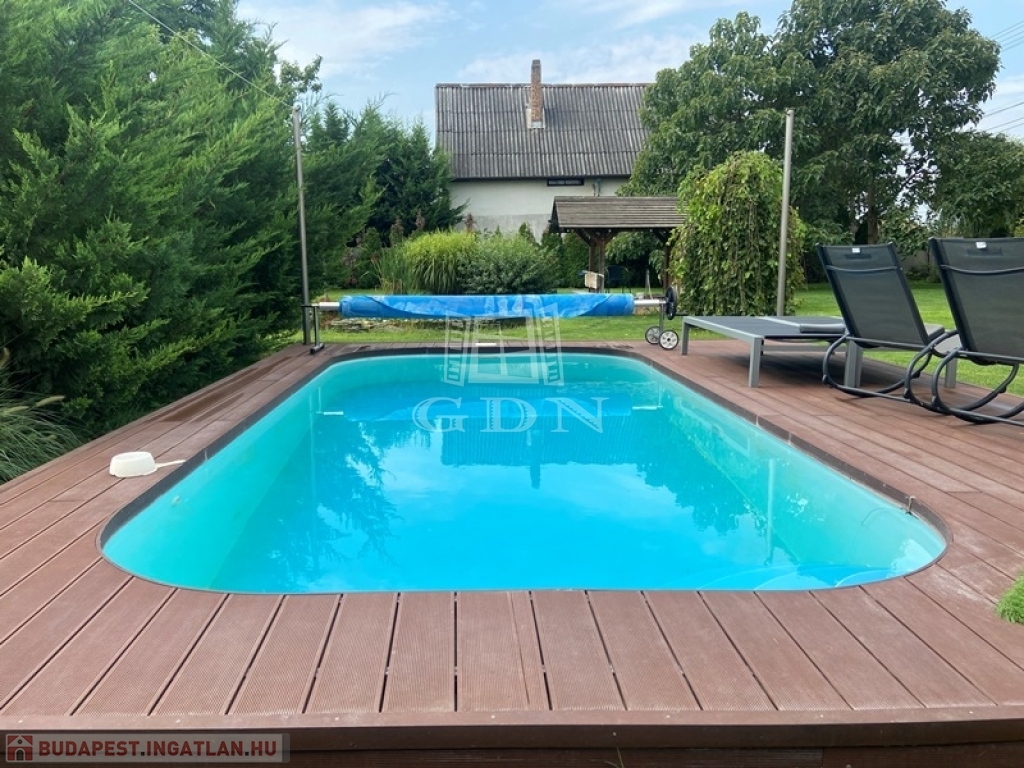 ALACSONY FENNTARTÁSÚ HŐSZIGETELT, KLIMATIZÁLT CSALÁDI HÁZ, MEDENCÉVEL, KERTI TÓVAL, DUPLA TELEKKEL!!!