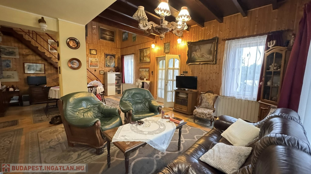 A családi ház felső szintjén klímával felszerelt nappali, 2 db hálószobával, 1 különálló fürdőszoba, az alsó szinten egy hatalmas tágas nappali gyönyörű napfénnyel beövezve, 1 db hatalmas étkezővel, 1 tágas hálószobával.