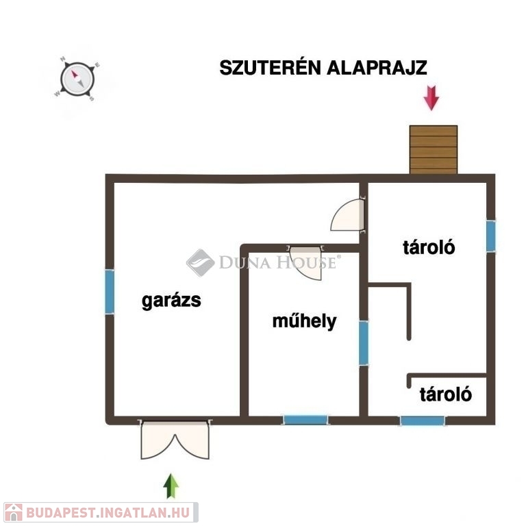 - szuterén szinten 1 állásos garázs elektromos garázskapuval, további tárolóhelyiségek, mosókonyha,