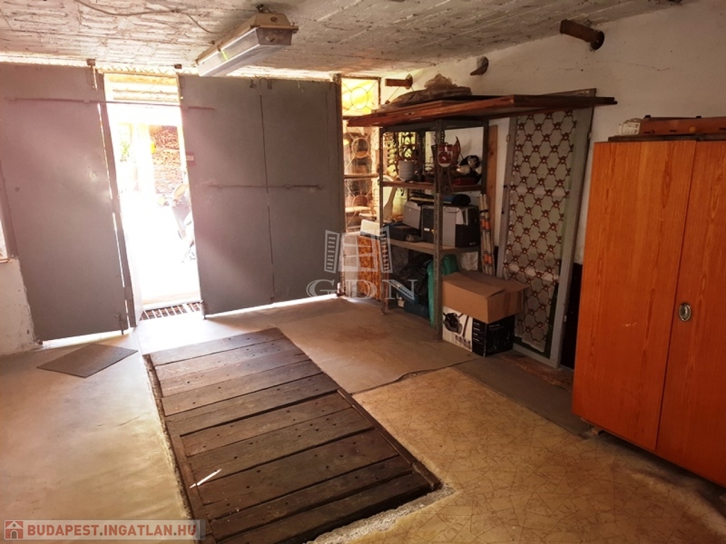 -pince szinten: garázs szerelő aknával, konyha, kamra, szerszám tároló, tároló.