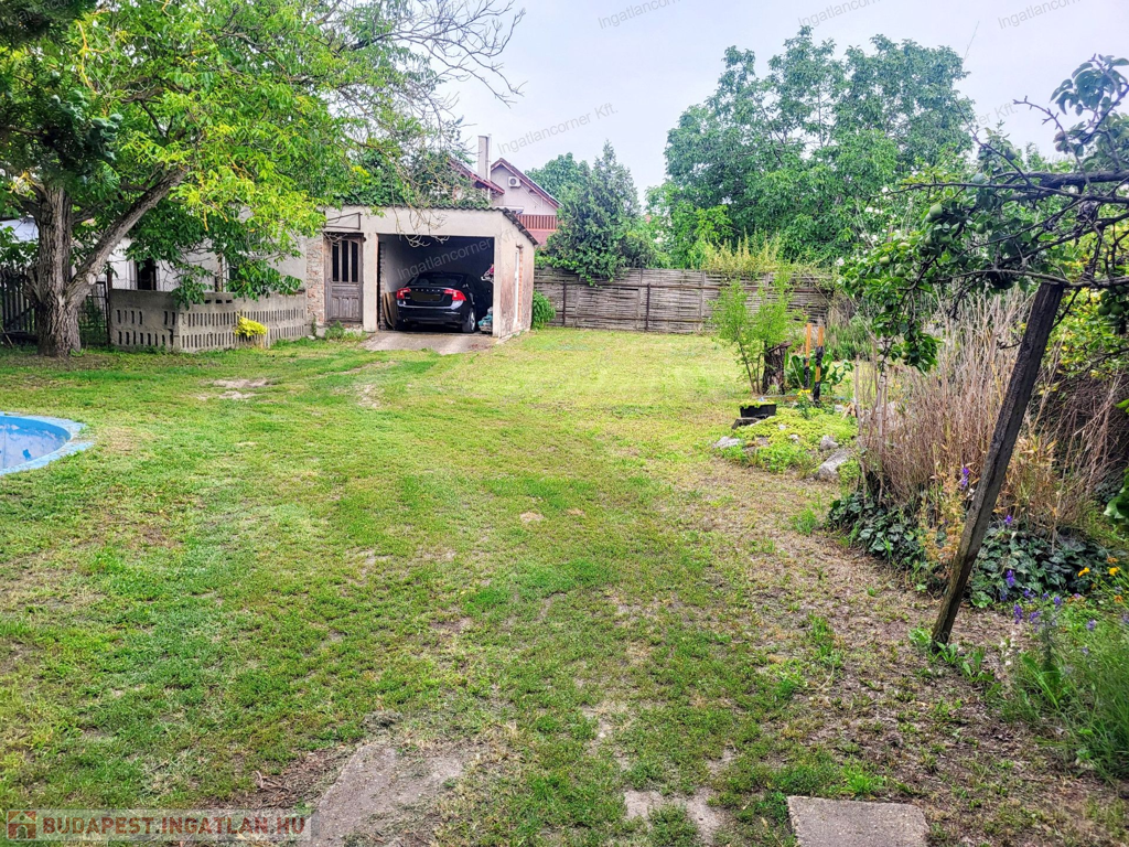 - KERT- UDVAR: A hátsó udvaron található egy 3,7 m átmérőjű, 0,8 m mély betonmedence leeresztő aknával, valamint egy fedett garázs, amely mellett egy állattartáshoz és/vagy tároláshoz használható épületrész helyezkedik el, illetve egy külön FÜSTÜLŐ Az udvaron termő dió-, körtefa és egy fügebokor is található. A telek mérete lehetővé teszi egy nagyobb konyhakert kialakítását is. A kert öntözését és a medence feltöltését fúrt kút biztosítja.
