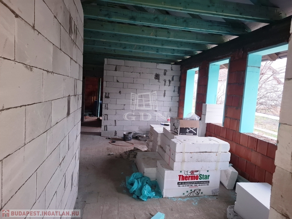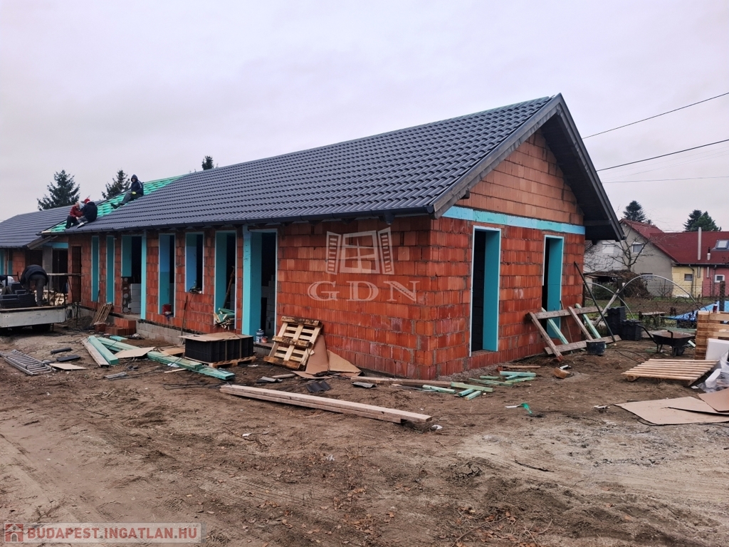 Szigethalom csendes aszfaltos utcájában a szomszédtól fedett kerti tárolóval elkülönített ikerház belső lakása eladó.