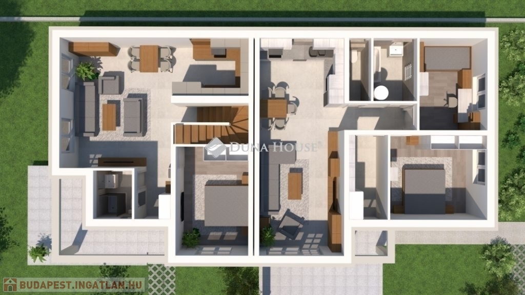 Eladó Szigethalmon csendes utcában egy kivételes, új építésű, két szintes, 90 nm-es iker családi ház hátsó része!