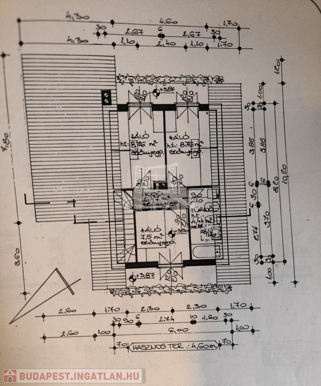- az emeleten 3 háló (8,76 nm, 8,76 nm, 7,5 nm), és egy épített zuhanyzós fürdő is található