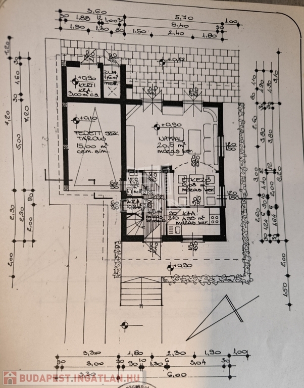 - bővítésére a szintén tégla falazatú 15 nm-es jelenleg autóbeállóként használt rész nyújt lehetőséget, mely mögött külön bejárattal kerti szerszámoknak 5 nm-es tároló is kialakításra került