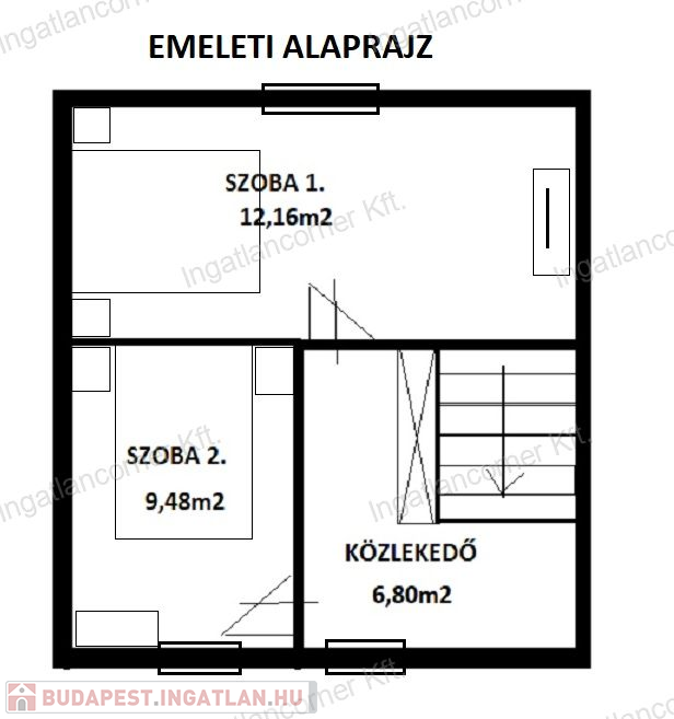 -két külön nyíló hálószoba érhető el, egy 12,16m2-es és egy 9,5m2 alapterületű.