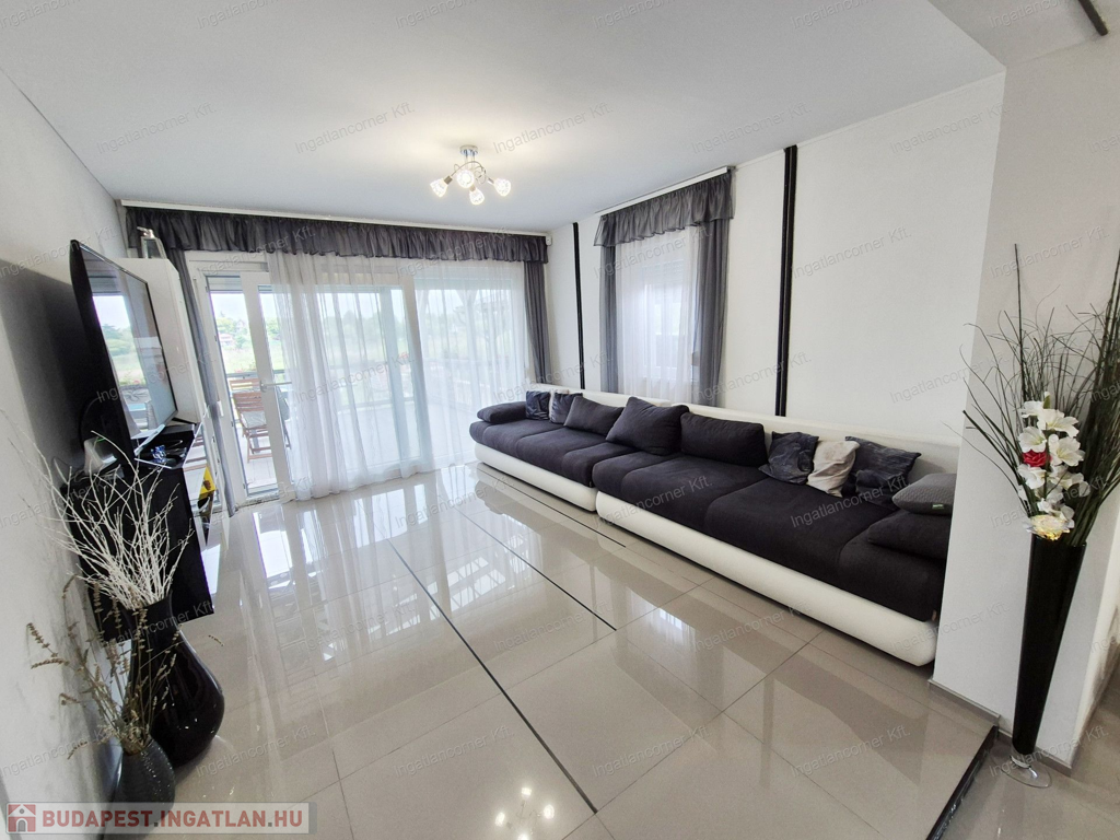 A lakótér 81 m², amelyet egy lélegzetelállító, 35 m²-es (fele beszámításra került az alapterületbe) fedett dunai panorámás terasz egészít ki – tökéletes helyszín a reggeli kávéhoz vagy egy esti borozáshoz.