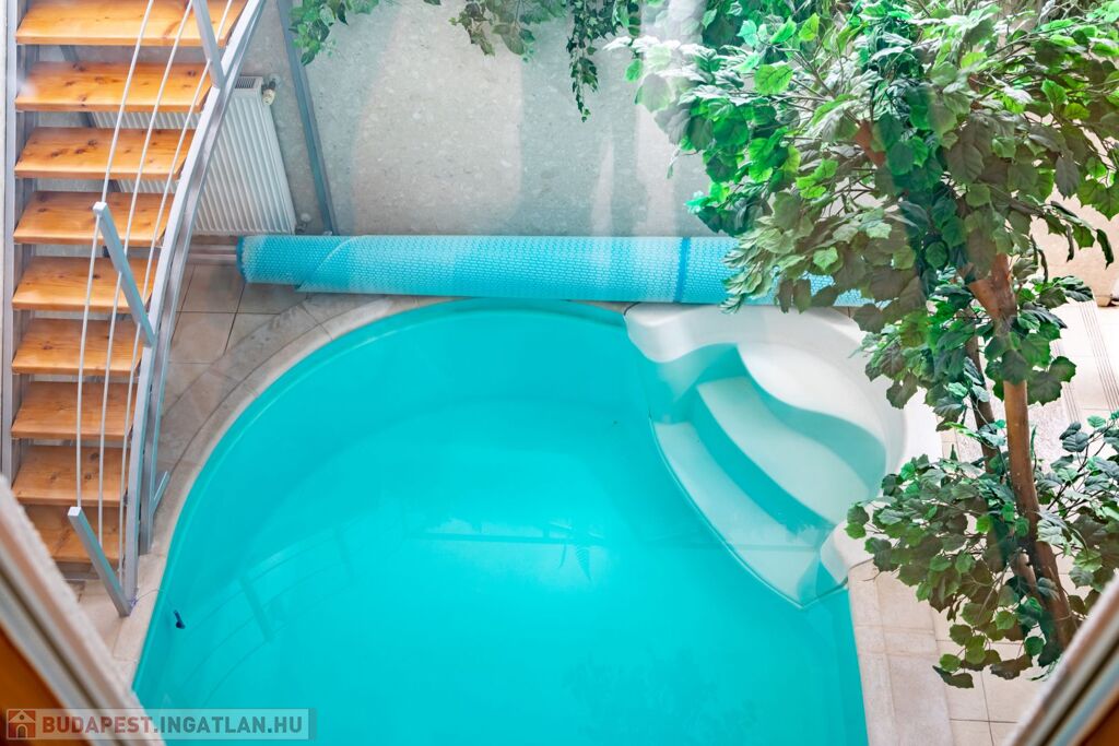 A beltéri úszómedence teljesen felszerelt, fűtése mindkét fűtési rendszerrel megoldható.