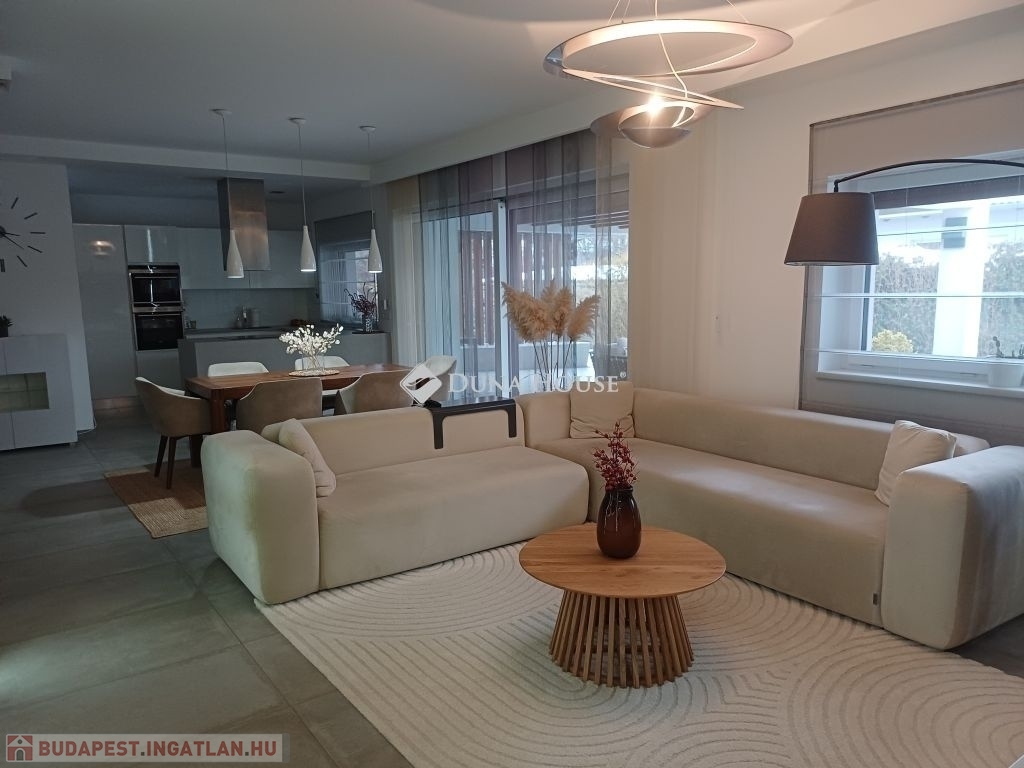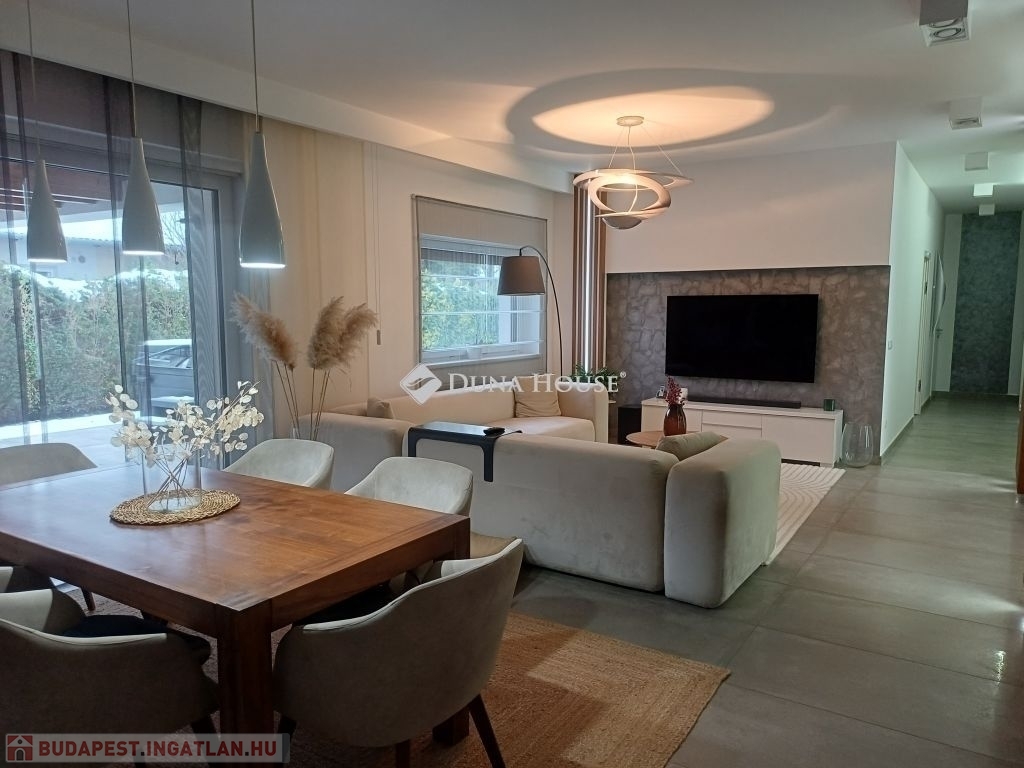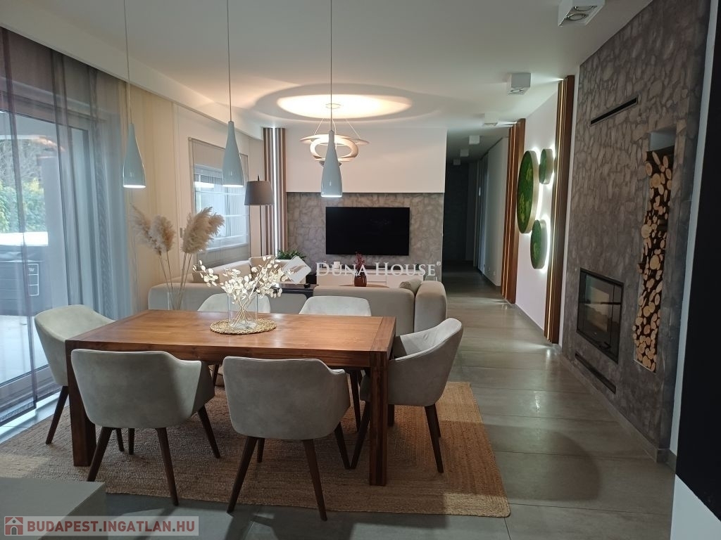 A luxusház tervezésénél kiemelt figyelmet fordítottak a részletekre, így az ingatlan válogatott prémium burkolatokkal, szaniterekkel és igényes anyaghasználattal került kivitelezésre. Az épület legmodernebb mérnöki megoldásokkal van felszerelve, amelyek közt megtalálható a teljes energetikai függetlenséget biztosító 10 kw kapacitású napelemrendszer, valamint a hőszivattyús hűtés-fűtés, ami télen padló- és mennyezetfűtést, nyáron pedig huzatmentes mennyezethűtést tesz lehetővé. A friss és pollenmentes levegőről egy szellőztető rendszer gondoskodik, míg a folyamatos biztonságot a házat őrző 6 nagy felbontású kamera és teljes körű riasztórendszer biztosítja. Az ingatlan 800 négyzetméteres telken helyezkedik el, mely egy intim, örökzöld kerttel öleli körbe a házat, ahol fúrt kút biztosítja a kert öntözéséhez szükséges vizet.