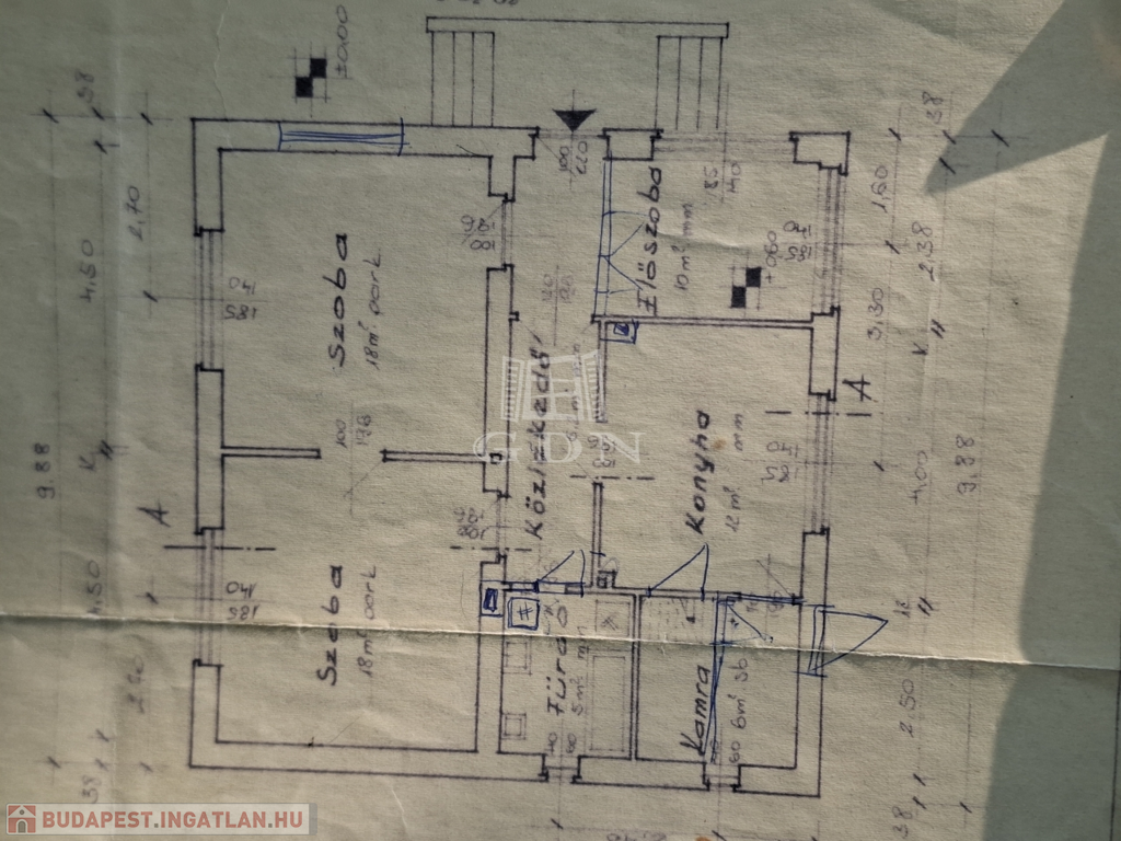 Az ingatlan helyiségei: előtér/közlekedő 6,2 nm,szoba 18 nm, szoba 18 nm, szoba 10 nm, fürdőszoba 5 nm, konyha 12 nm, kamra/ pincelejáró/padlásfeljáró 6 nm, pince 6 nm.