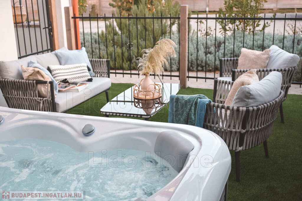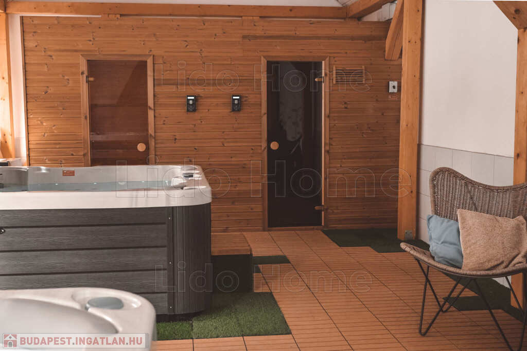 Az apartmanház udvarán található wellness részleg kettő jakuzzival, egy finn- és egy infra szaunával egybekötött só szobával várja a vendégeket.