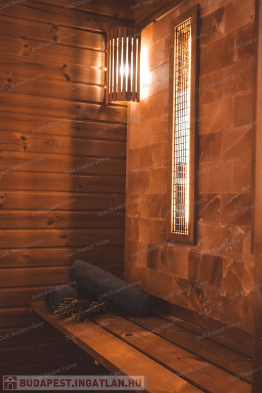 Az apartmanház udvarán található wellness részleg kettő jakuzzival, egy finn- és egy infra szaunával egybekötött só szobával várja a vendégeket.
