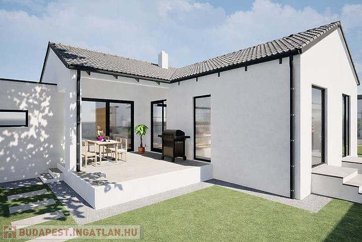 A 400 m²-es telek tágas lehetőséget kínál kert kialakítására és kültéri pihenésre, saját zöld oázis kialakítására.
