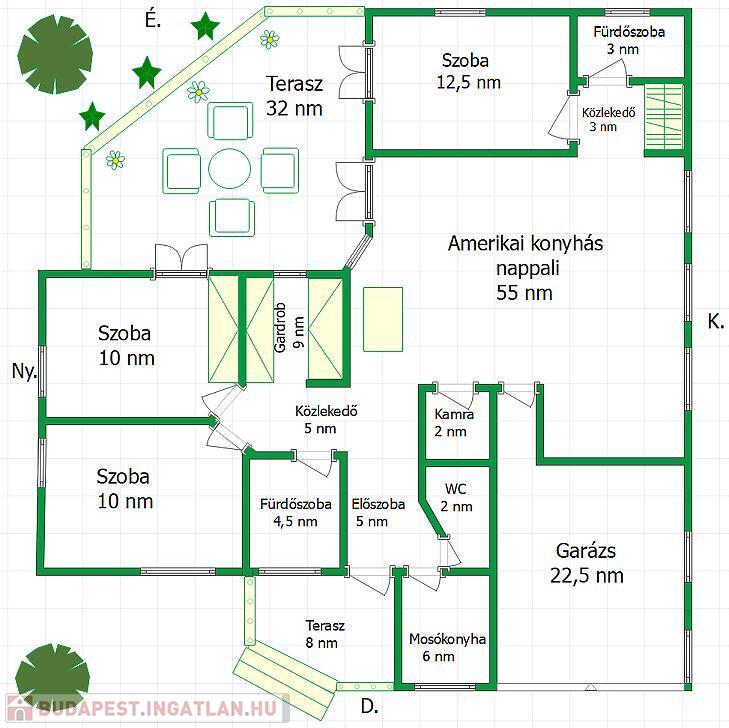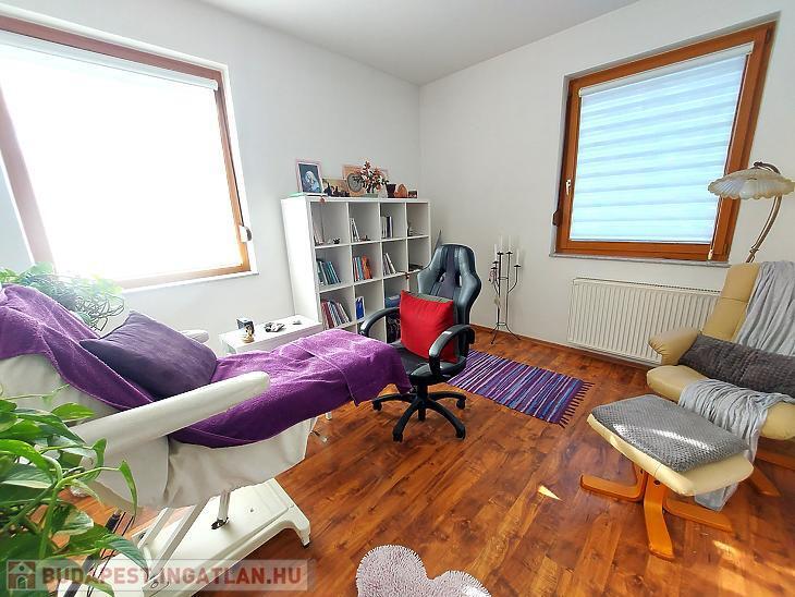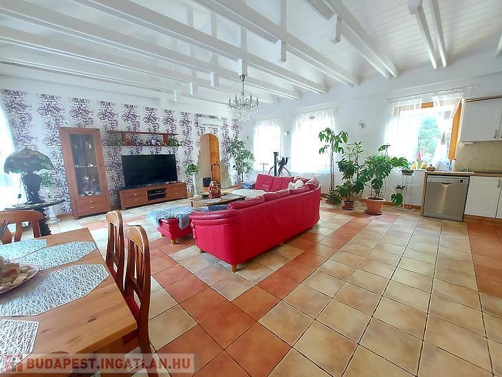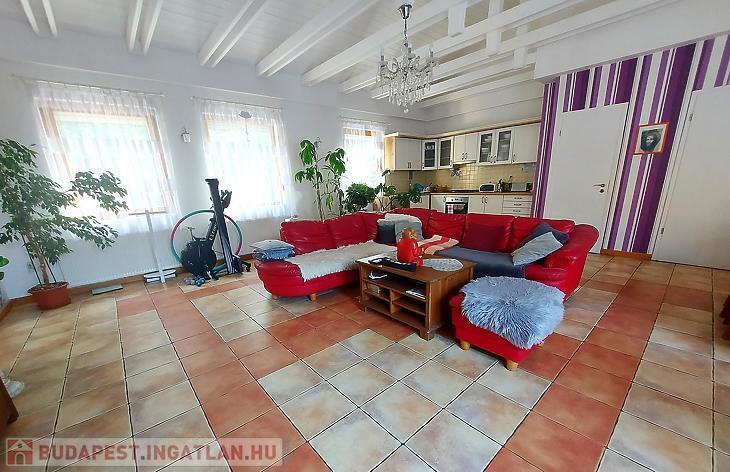 Az ingatlan átgondolt belső kialakítással rendelkezik: tágas, amerikai konyhás nappali, három hálószoba, két fürdőszoba, gardrób, mosókonyha, előszoba, kamra és külön WC.