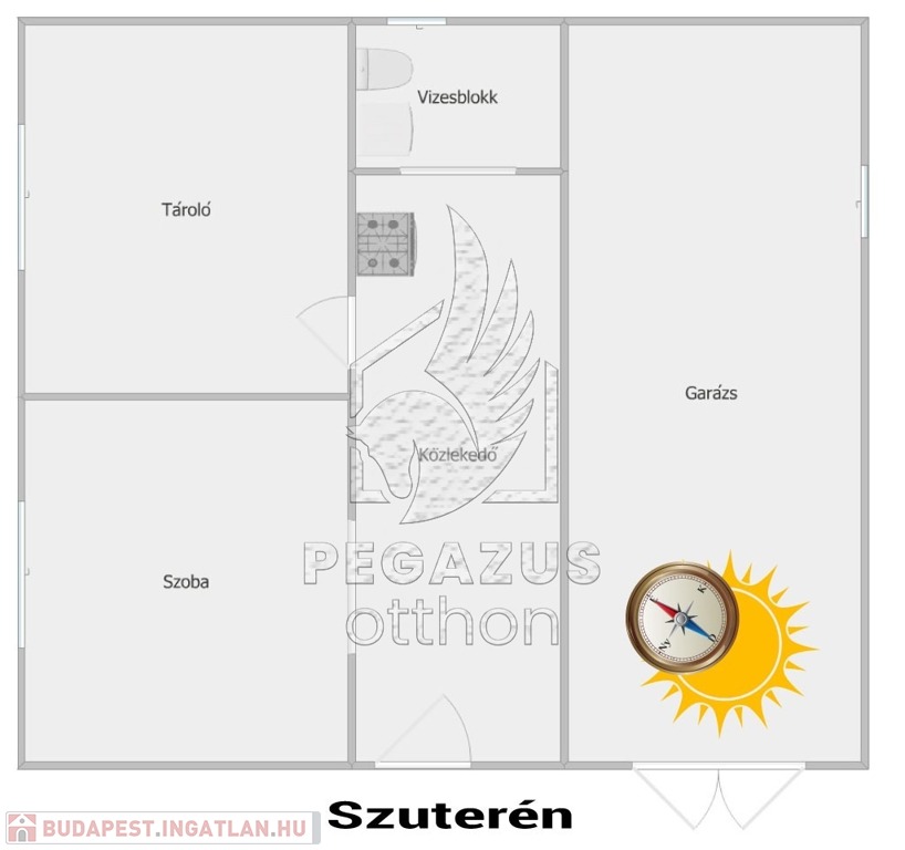 Az épület alatt egy szuterén szint is található, amely körülbelül 175 cm-es belmagasságával további hasznos tereket kínál: itt két nagyobb, akár hobbiszobának vagy tárolónak is alkalmas helyiség, valamint egy vizesblokk lett kialakítva.