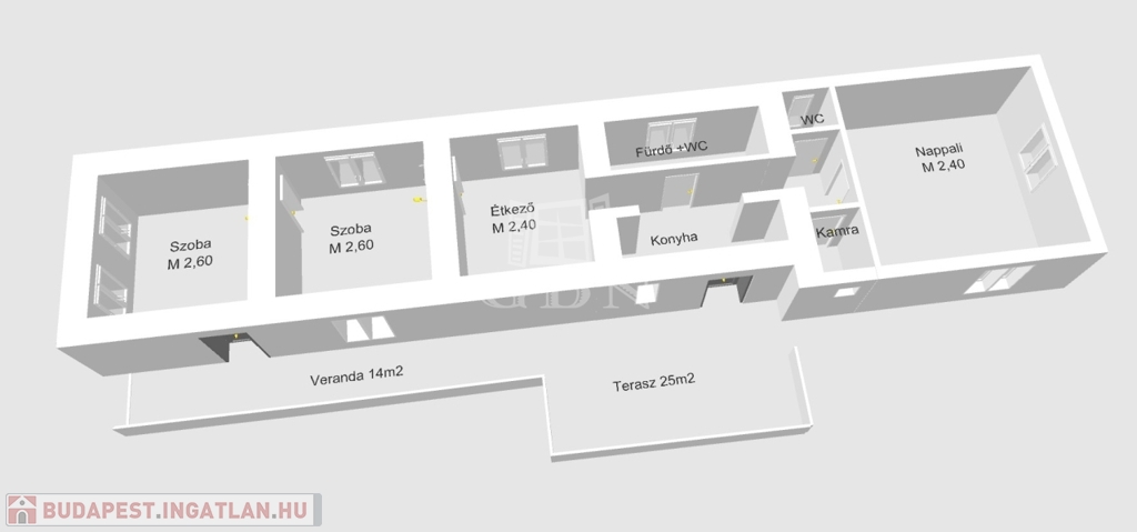 Üdülni vagy üdültetni? Itt a lehetőség: nagy terek, világos nappali + két hálószoba, fedett terasz + veranda.