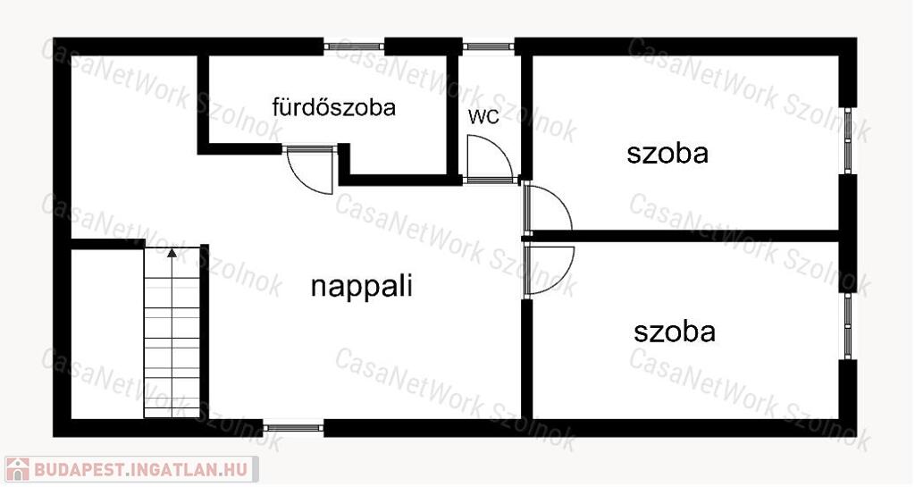 - fürdőszoba, az emeleten nappali, két szoba, fürdőszoba