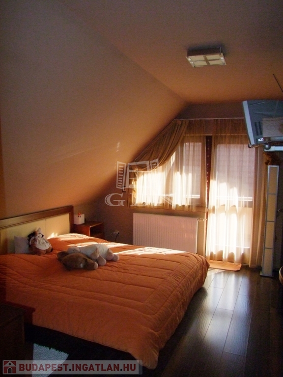 Az emeleten 4 szoba, 3 fürdőszoba, közlekedő, gardrób és 3 erkély van, melyekről gyönyörködhetünk a csodálatos parkosított udvarban.