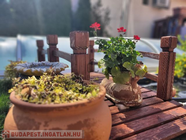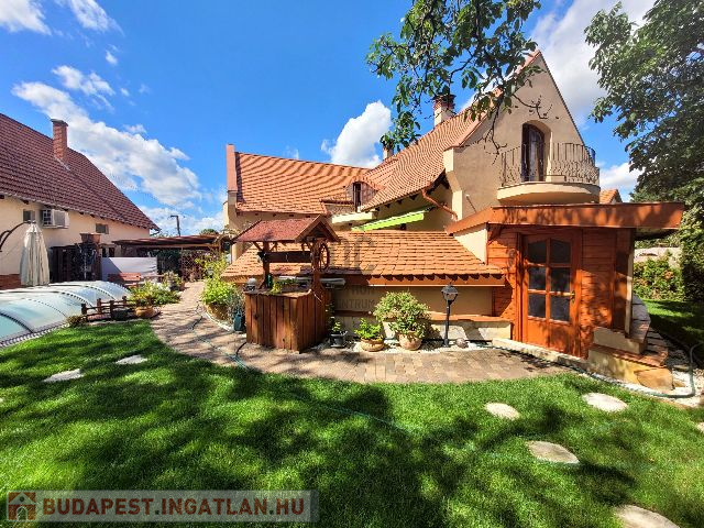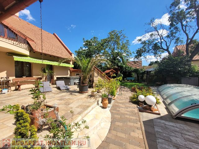 Élhető, tágas terek és kényelmi szempontokból is átgondolt kivitelezés jellemzi az egész ingatlant. Leendő tulajdonosa az év bármely szakaszában kikapcsolódhat anélkül, hogy kitenné a lábát otthonából: a 712 nm-es kert igazán intim, varázslatos hangulatot áraszt, itt rendelkezésre áll jakuzzi (5 személyes), fedett medence (6*3 m-es és 1,5 m mély+hangulatvilágítás), hatalmas terasz (44,06 nm), melyen élvezhetjük a nyári napsütést, vagy kiülve akár elfogyaszthatjuk reggelinket madárcsicsergés kíséretében. Borongósabb napokon szauna, szolárium és a nappaliban elhelyezett kandalló tüze segíthet kizökkenni a szürke hétköznapokból.