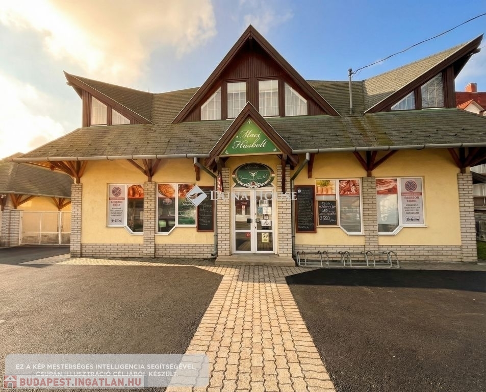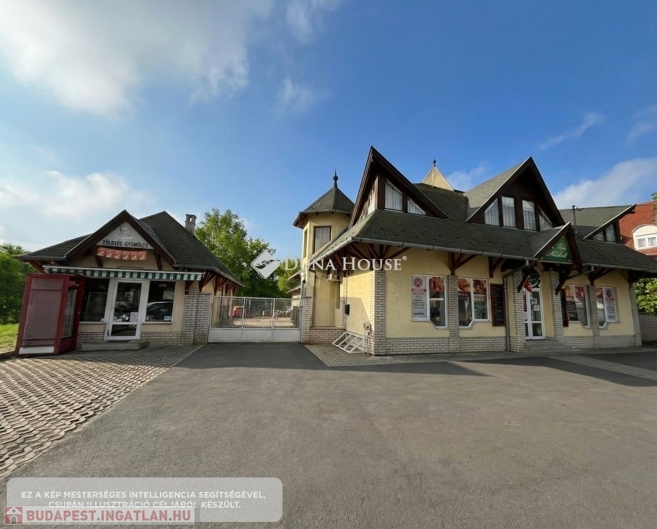 Az ingatlan egy 2002 m2-es telken helyezkedik el, kétszintes téglaépítésű főépülettel, valamint egy különálló üzlethelyiséggel.