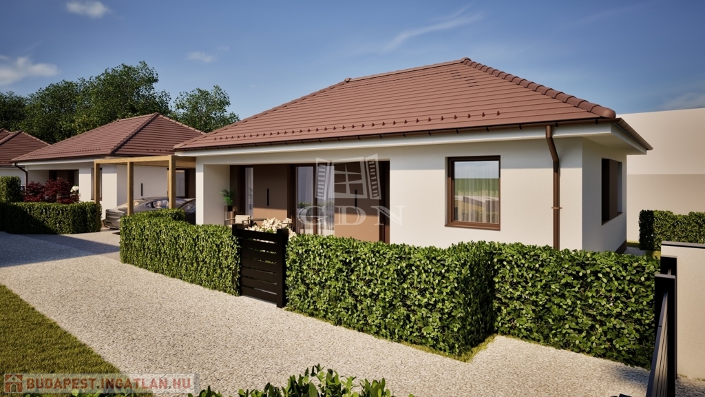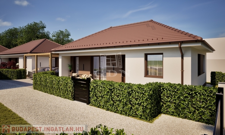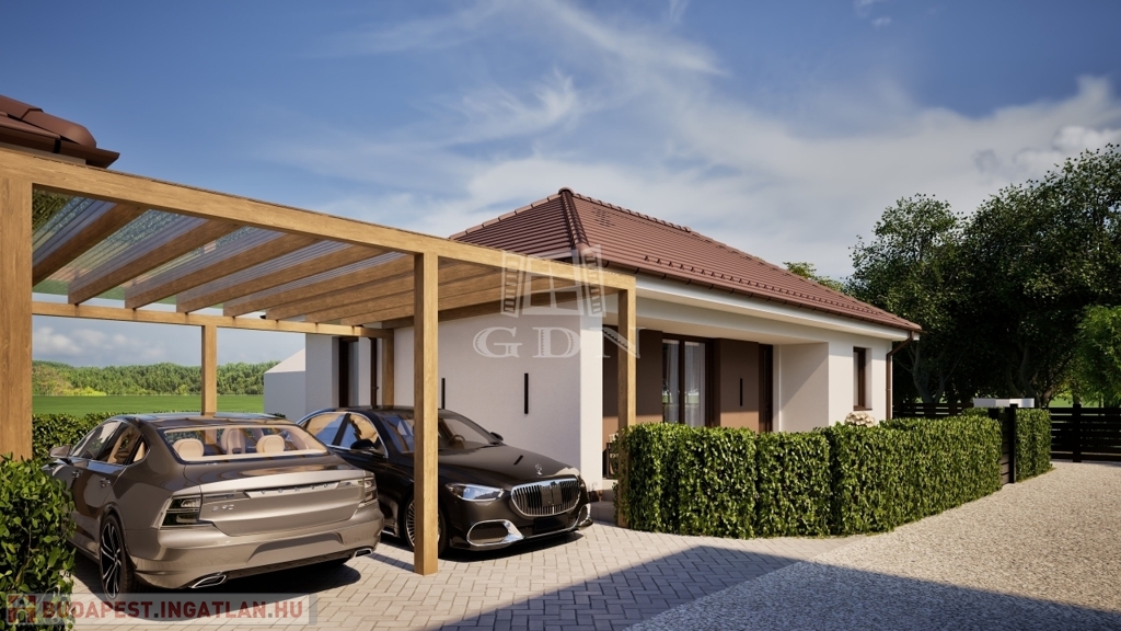 A Wienerberger Porotherm téglából épülő házak magas műszaki tartalommal épülnek. Tetőszerkezete C22 I. osztályú , rovar, gomba és lángmentesítővel kezelt faanyaggal kerül kivitelezésre. Fedése Terran vagy Bramac cseréppel történik, az összes rendszer tartozékkal, előírások szerint helyenként hófogóval. Bádogos szerkezetek, a külső vízelvezetések ereszcsatornái, a lefolyócsövei és az egyéb bádogos szerkezetek 0.6 mm vastag acéllemezből készülnek. Homlokzati falfelületek 15 cm vastag EPS hőszigetelő rendszert, a lábazatok 10 cm vastag XPS lábazati hőszigetelő rendszert kapnak. A padozatokba 10 cm vastag teherbíró EPS hab hőszigetelés kerül. A födém hőszigetelése 25 cm vastag ásványgyapot szigetelőanyaggal történik. Külső nyílászárói műanyag, három rétegű üvegezéssel szerelt, fokozottan hang-és hőszigeteltek. Fűtése, a háztartási helyiségben elhelyezett 10Kw teljesítményű Gree Versati 3 hőszivattyúval történik, padlófűtéses hőleadással szabályozható termosztáttal. A hőszivattyú biztosítja a melegvizet is, egy 200 literes hőtárolós víztartállyal. Nappaliában 3.5 Kw teljesítményű hűtő- fűtő klíma kerül. Az ingatlanban riasztó, kaputelefon előkészítés történik. Beltéri ajtók, hideg-meleg burkolatok, szaniterek, csaptelepek választhatók.. Ha bővebb tájékoztatást szeretne, kérem keressen. Vegye igénybe irodánk szolgáltatásait. Hitelügyintézésben is segítünk.