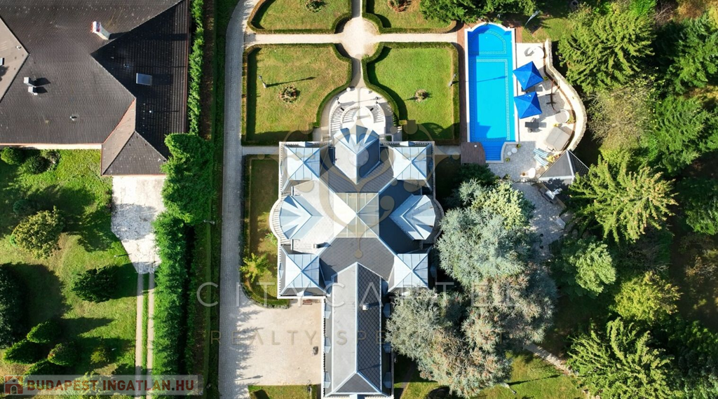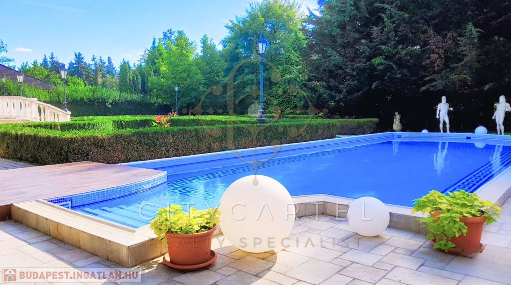 A kert ékessége a 19,5x6 méteres úszómedence, valamint a kiváló minőségű jacuzzi, amelyek tökéletes helyszínt biztosítanak nagy családi ünnepségekhez, baráti összejövetelekhez és bármilyen társasági eseményhez.
