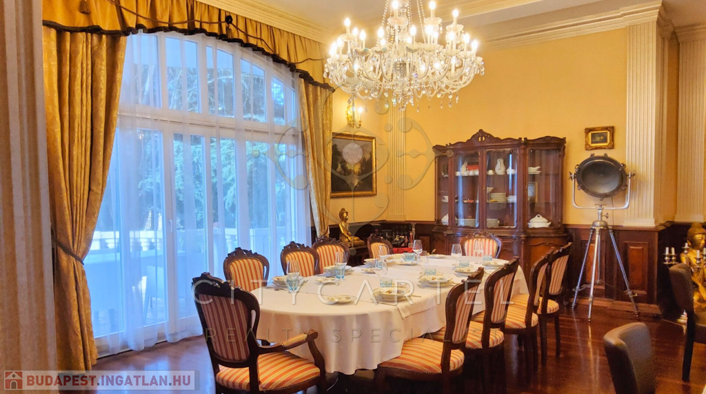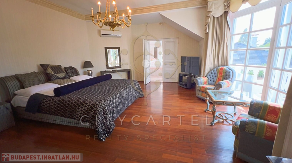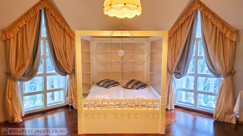 Minden helyiségben minőségi selyemtapéta borítja a falakat, az ablakokat pedig egyedi tervezésű selyemfüggönyök keretezik.