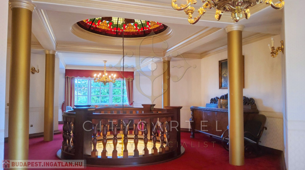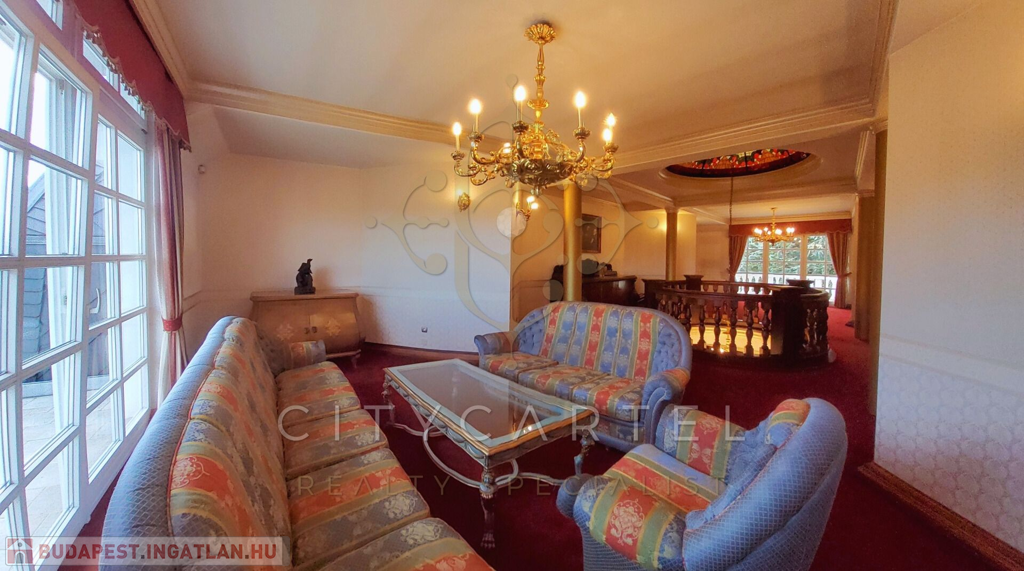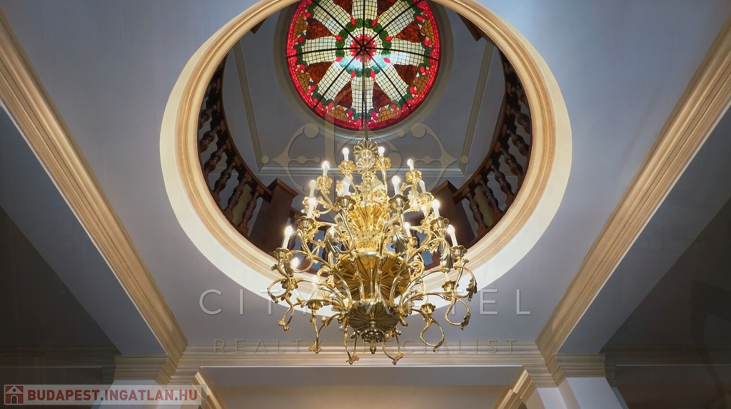 A nappali központi eleme, igazi különlegesség az épületen belül a csaknem 30 nm-es, 3500 lapból rakott, egyedi római kőburkolat, amely a nappali padlózatát díszíti - valamint a 120 nm-es galéria ólomüveg kupolája.