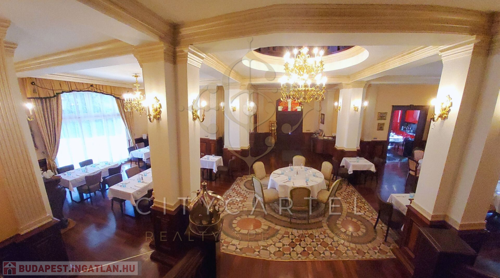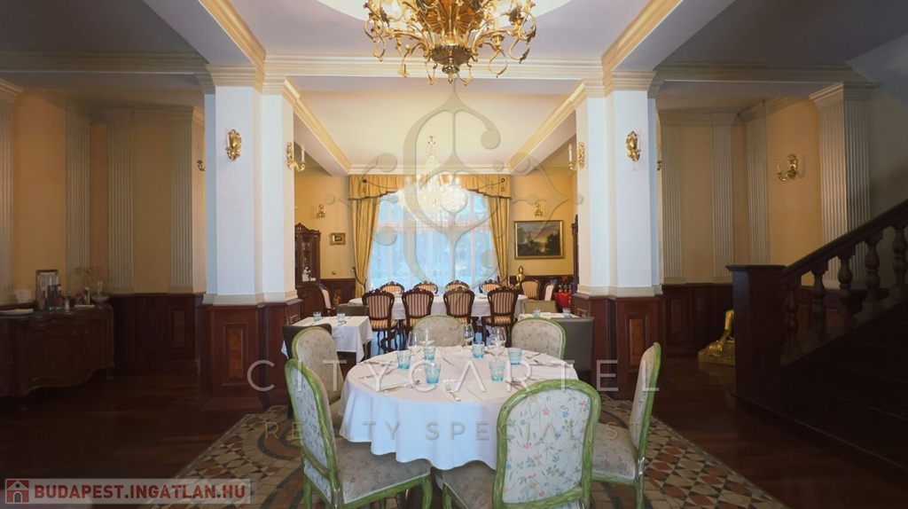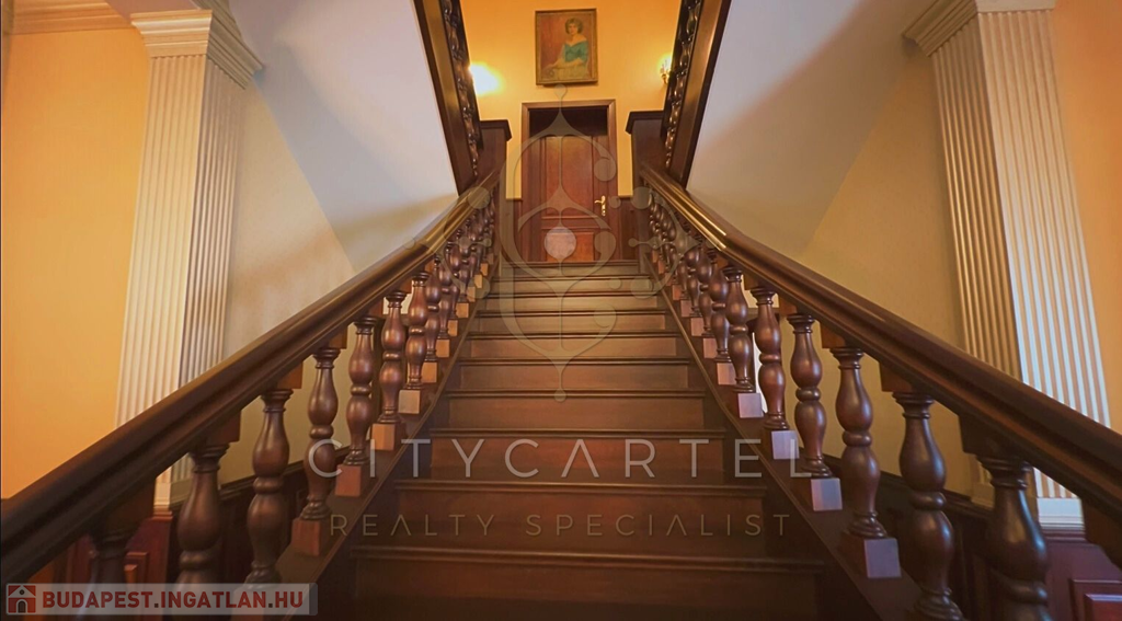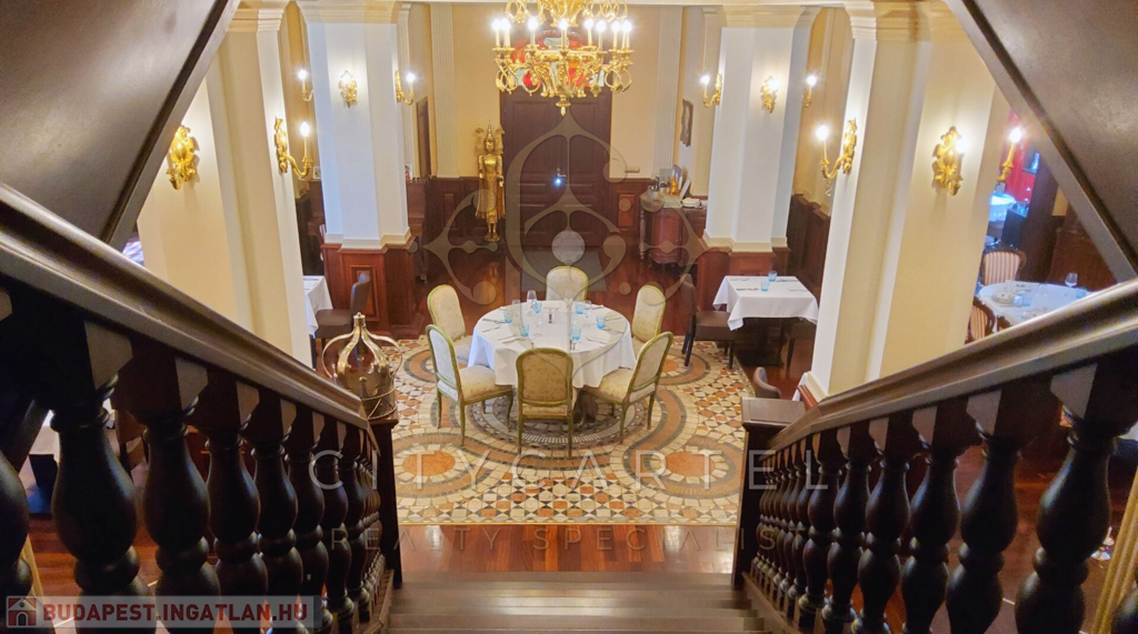 A néhány lépcsőn megközelíthető, impozáns előteraszról nyíló főbejáraton belépve tágas, 122 nm-es nappali fogadja az érkezőket, amely tökéletes választás lehet nagyobb fogadások és rendezvények elegáns helyszínének.