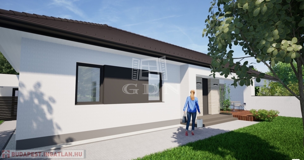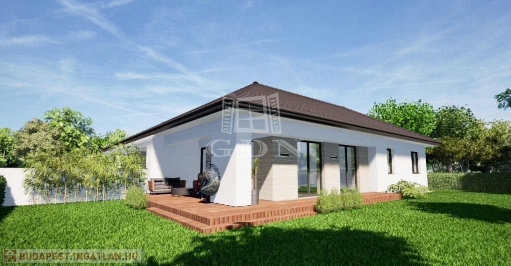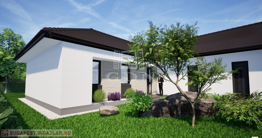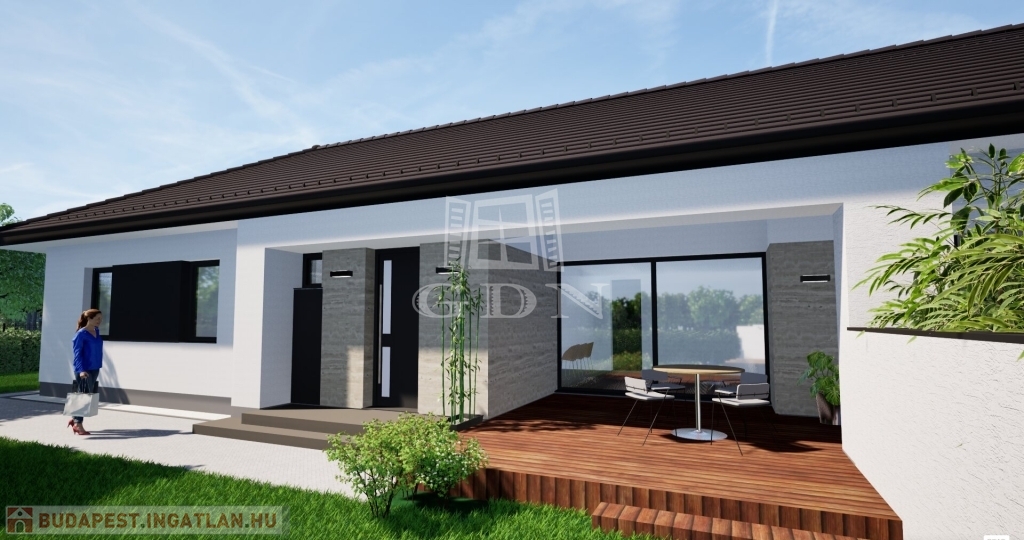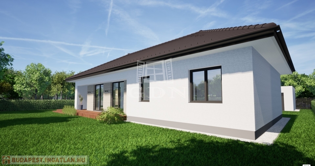 A Wienerberger Porotherm téglából épülő házak magas műszaki tartalommal épülnek. Tetőszerkezete C22 I. osztályú , rovar, gomba és lángmentesítővel kezelt faanyaggal kerül kivitelezésre. Fedése Terran vagy Bramac cseréppel történik, az összes rendszer tartozékkal, előírások szerint helyenként hófogóval. Bádogos szerkezetek, a külső vízelvezetések ereszcsatornái, a lefolyócsövei és az egyéb bádogos szerkezetek 0.6 mm vastag antracit acéllemezből készülnek. Homlokzati falfelületek 15 cm vastag EPS hőszigetelő rendszert, a lábazatok 10 cm vastag XPS lábazati hőszigetelő rendszert kapnak. A padozatokba 10 cm vastag teherbíró EPS hab hőszigetelés kerül. A födém hőszigetelése 30 cm vastag ásványgyapot szigetelőanyaggal történik. Külső nyílászárói műanyag, három rétegű üvegezéssel szerelt, fokozottan hang-és hőszigeteltek. Fűtése, a háztartási helyiségben elhelyezett 10Kw teljesítményű Gree Versati 3 hőszivattyúval történik, padlófűtéses hőleadással szabályozható termosztáttal. A hőszivattyú biztosítja a melegvizet is, egy 200 literes hőtárolós víztartállyal. Az ingatlanban riasztó, kaputelefon, klíma előkészítés történik. Beltéri ajtók, hideg-meleg burkolatok, szaniterek, csaptelepek választhatók. Garázs 19.5 m2, 7 239 000 Ft. Ha bővebb tájékoztatást szeretne, kérem keressen. Vegye igénybe irodánk szolgáltatásait. Hitelügyintézésben is segítünk.