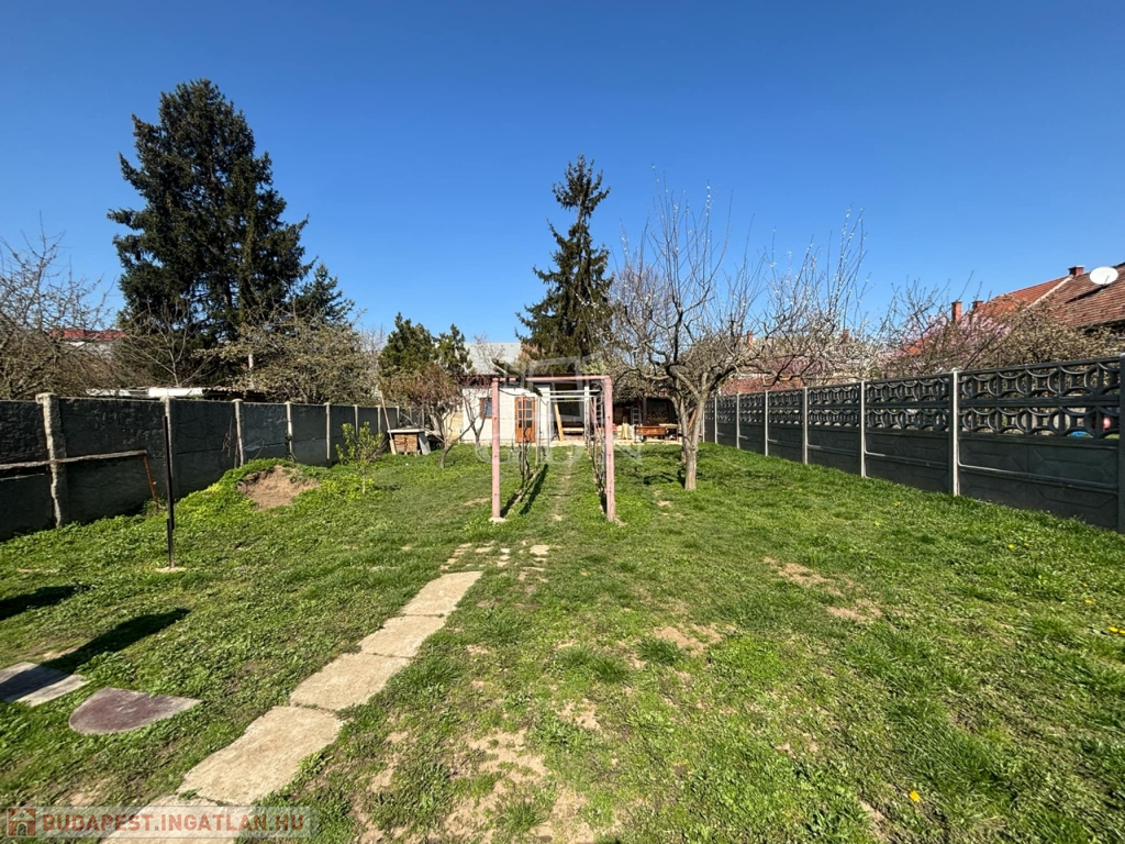 Az udvaron tárolók, gyümölcsfák és kút található.