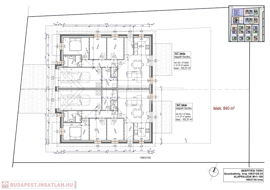 Telek utcafronti, jobb és baloldali kerítés illetve az ingatlanok közti elválasztó kerítés (felületmintás betonelem) építése 1.75-2 m magasságban.